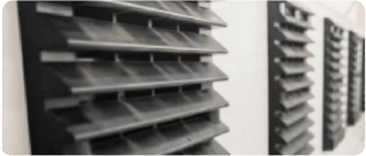 L’ensemble de la plaque du moule est renforcé, et l’épaisseur de la plaque centrale est augmentée de 120 % par rapport à la plaque standard. Grâce à l’analyse des contraintes, DKM optimise la disposition des renforts pour un serrage plus efficace du moule.