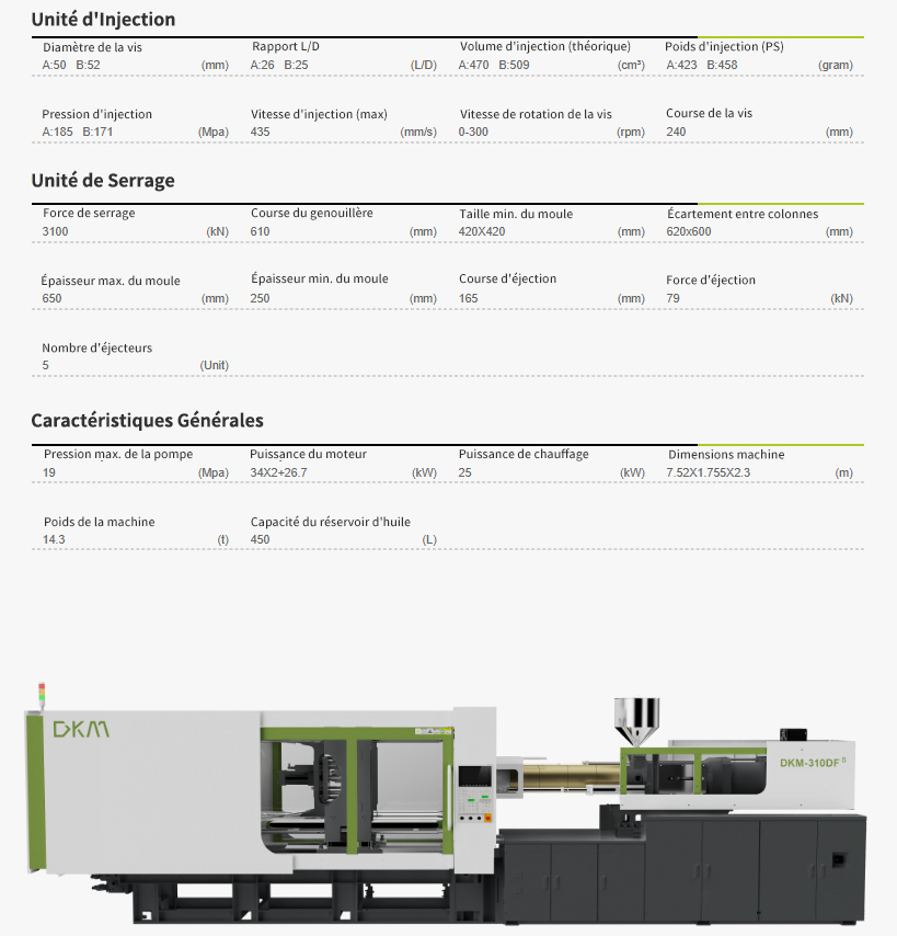 Si vous envisagez d’acheter une machine de moulage par injection à parois minces de la série DKM-DFS, DKM offre les avantages suivants :