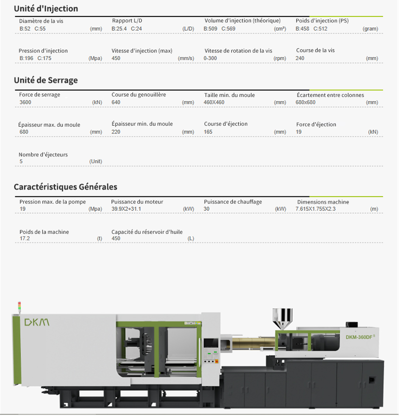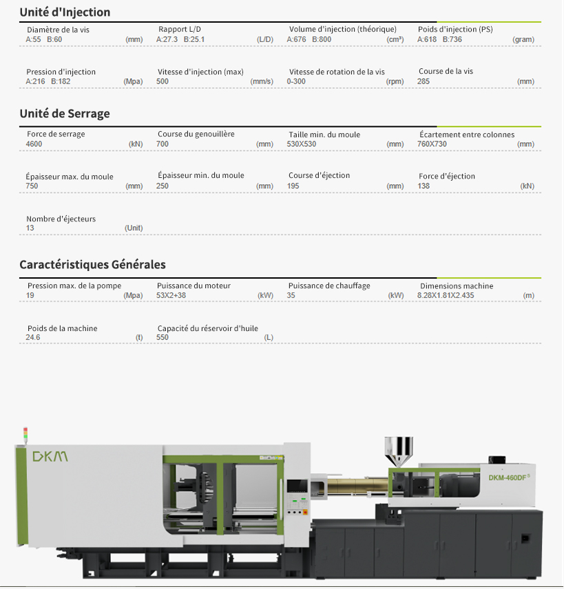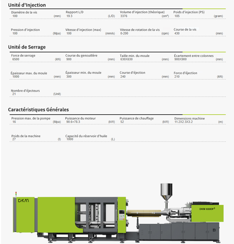 - Paramètres de la machine de moulage par injection à paroi mince à grande vitesse DFS