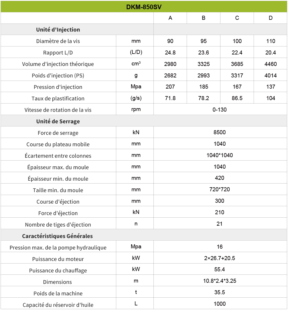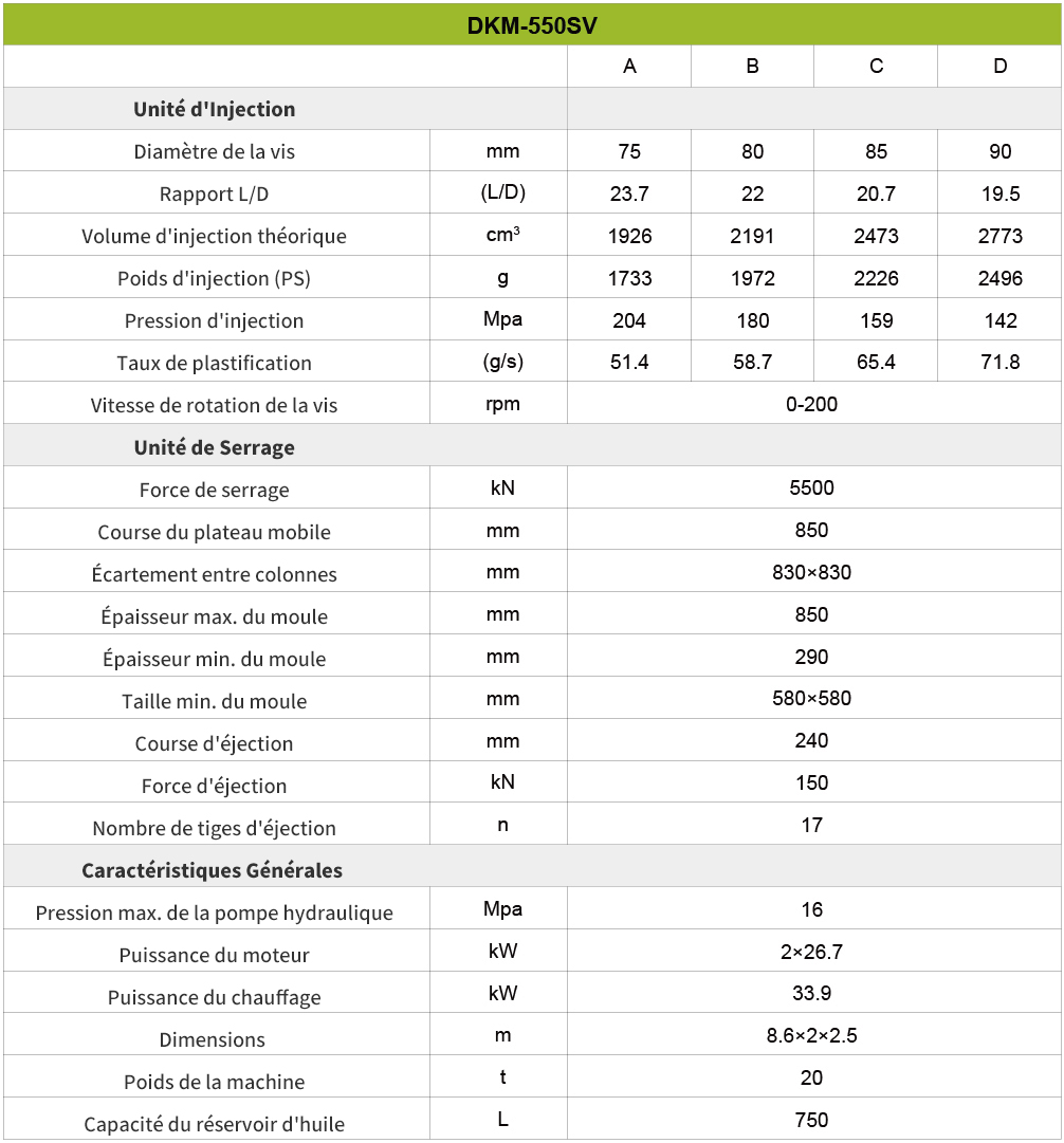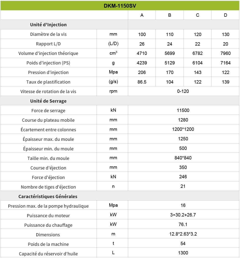 En conclusion, cette machine est un choix très avantageux pour les entreprises qui recherchent une technologie avancée, une polyvalence et une fiabilité dans leurs opérations de fabrication. Grâce à son large éventail d’options de tonnage, la machine peut répondre à différentes tailles de projet et offre une évolutivité pour la croissance future.L’intégration de technologies avancées, telles que les systèmes d’entraînement à servomoteur et les capacités d’injection à grande vitesse, assure des performances exceptionnelles, une efficacité énergétique et un contrôle précis. L’interface et les commandes conviviales rendent le fonctionnement intuitif et efficace, tandis que le support et le service complets de DKM garantissent une expérience fluide de l’installation à la maintenance continue.De plus, la rentabilité de la machine, ainsi que sa qualité durable, en font un investissement intelligent pour les entreprises qui visent à maximiser la productivité et la rentabilité. Dans l’ensemble, le choix de cette machine offre une solution fiable et efficace pour répondre aux besoins de production divers et réussir dans l’industrie manufacturière compétitive.