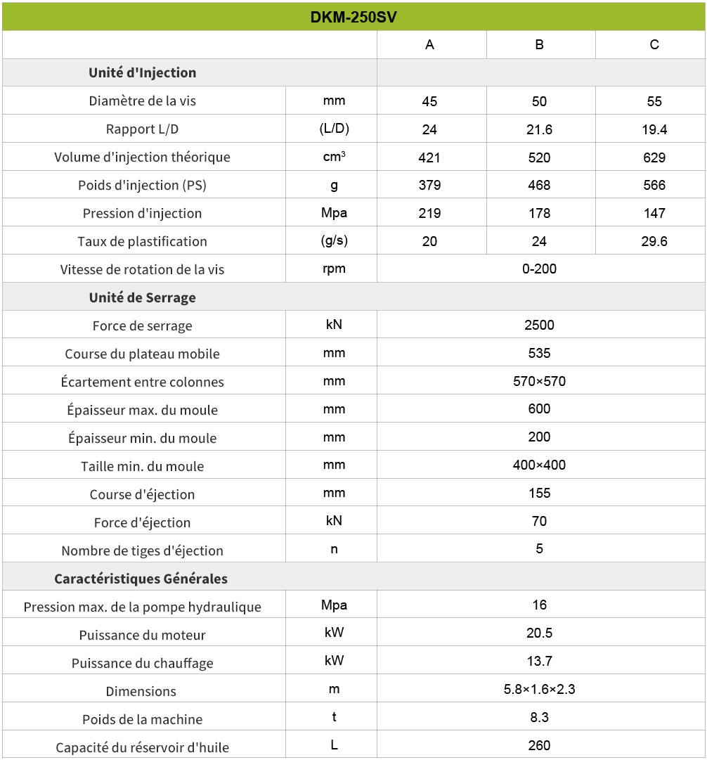 - Spécification de la machine de moulage par injection de moteur servo